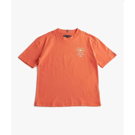 ファングラフィックのロゴがプリントされたポップで楽しいショートスリーブTシャツ。リゾートにもタウンにも映えるカラーリングが活躍度を高めます。左袖口にはフラッグロゴ刺しゅうをあしらいました。素材はコットン100%で肌触りがよく、1枚着からインナーまで自在に着回せます。