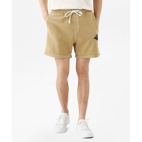 リラックスして穿けるスウェット素材のショートパンツ。適度なゆとりのあるレギュラーフィットシルエットを膝上丈で軽快に仕上げています。左ポケット前にはTOMMY JEANSのバーシティグラフィックをあしらいました。また、ウエストに備えたドローコードがスポーティなアクセントを加えています。