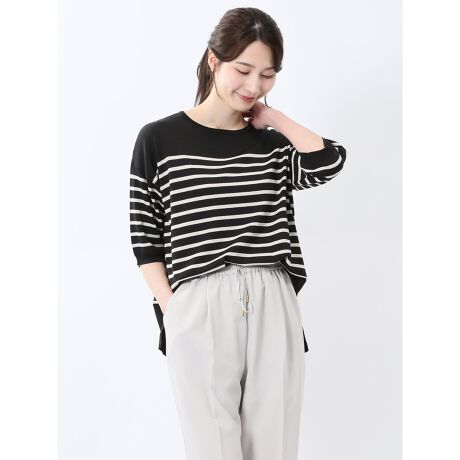 快適機能 ゆるボーダー クルーネック 半袖ニット