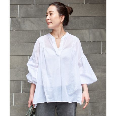 腕まくりした際の柔らかなキャンディスリーブがフェミニンな印象のブラウス。