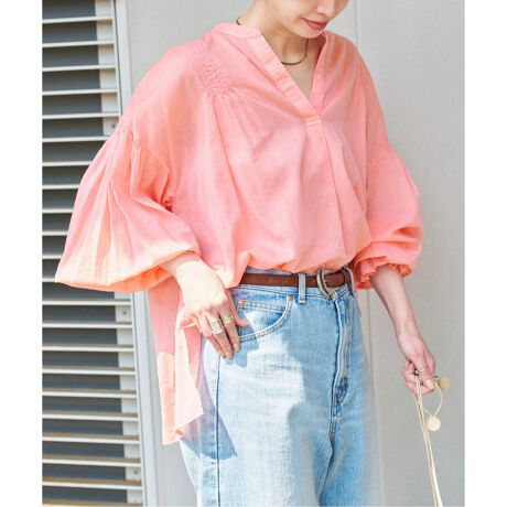 腕まくりした際の柔らかなキャンディスリーブがフェミニンな印象のブラウス。