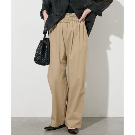 ウエストはオールゴムで楽な穿き心地。太めのシャーリングデザインがポイントになり、トップスをインしても決まります。