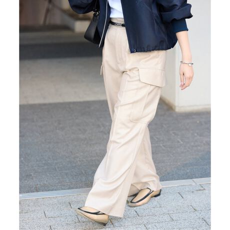 綺麗なスラックスのシルエットをベースに、あえて斜めにしたカーゴポケットで女性らしいバランスに。