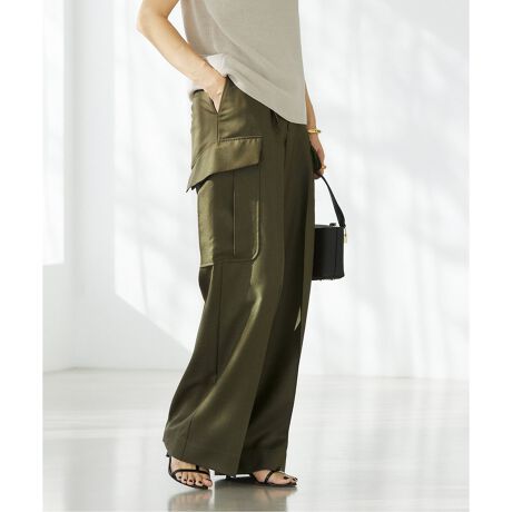 綺麗なスラックスのシルエットをベースに、あえて斜めにしたカーゴポケットで女性らしいバランスに。
