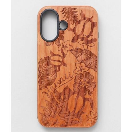 [型番:4SJP5197-2025]ウッドにレーザー加工したスマホケース。どのデザインもウッドに描かれているので、落ち着いた雰囲のなかにハワイの力強さを感じられます。iPhone16対応。