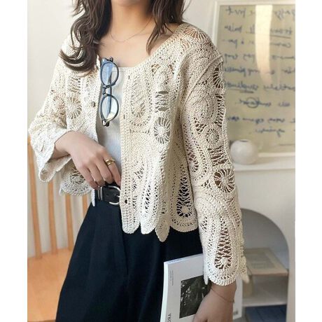 前後2WAYで楽しめる、トレンドライクなクロシェレースカーディガン。