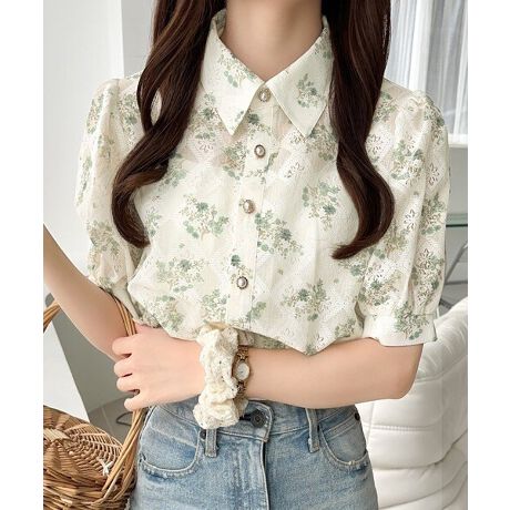 1枚でぱっと華やかになるレディライクな花柄ブラウス。
