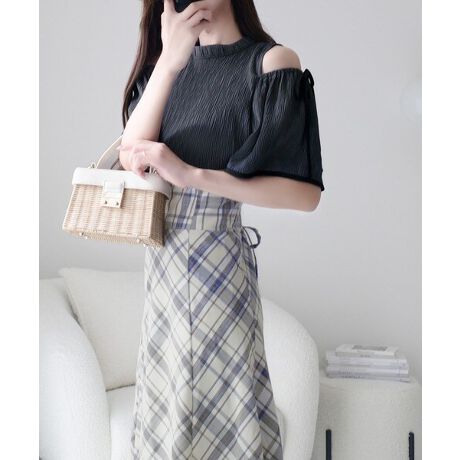 肩開きプリーツブラウスドッキングチェックワンピースは、春夏のさわやかな日々にぴったりのアイテムです。
