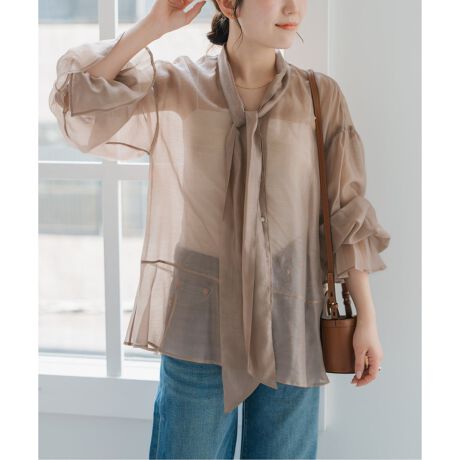 シアーボウタイブラウス