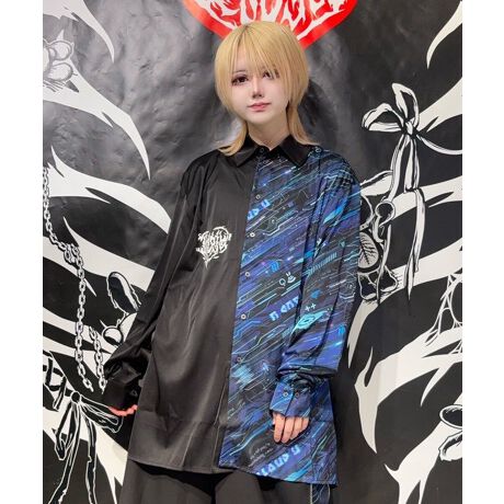 BACKSTAGE PASS(バックステージパス)のYANG YONG-ELECTRONIC CIRCUIT(ヤンヨン-エレクトロニックサーキット)切り替え トロミシャツ バックジップ仕立てです。