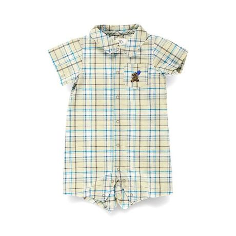ベビー男児:01-5239-315 商品名【おそろい】ぽこぽこ/サッカーチェック柄半袖カバーオール