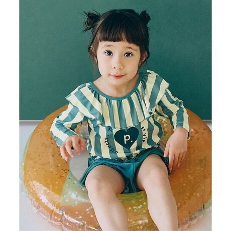 長袖デザインでラッシュガードがなくてもOKな女の子のスイムウェア。