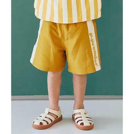 ちょっとスポーティーでレトロなイメージでデザインしたスイムショーツ。p.premierのロゴがアクセントになっています。落ち着いたカラー感でおしゃれに着こなせます。ウエスト調節紐とメッシュのインナーパンツ付きです。ラッシュガードとセットで着ていただくのもおすすめ。