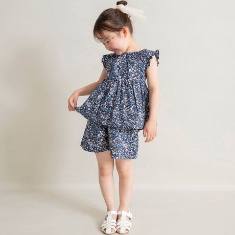 トップスは袖のフリルとギャザーをたっぷり寄せたウエスト切替が
