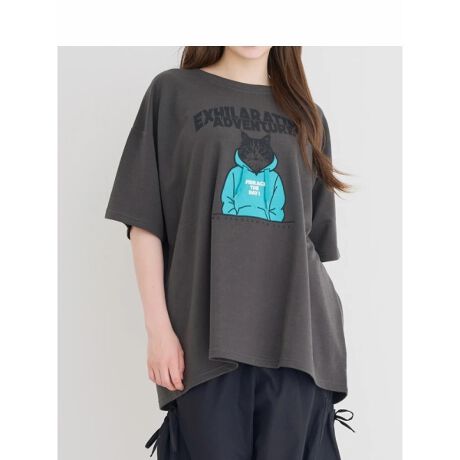 パーカーを着たネコデザインがキュートなアクセントをプラスするTシャツ。