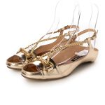 夏の陽射しに映えるゴールドのアクセサリーを身に付ける感覚で履けるサンダルパンプス。
