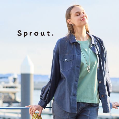 【Sprout.】デニム調 麻混ドロップショルダーブラウス