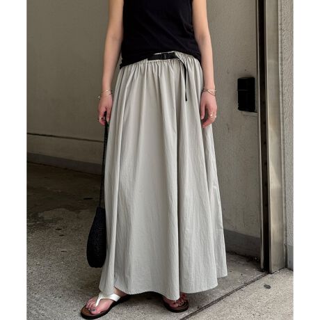 シャリ感のあるナイロン素材にワッシャー加工を施し、表情豊かに仕上げたワークベルトスカート。