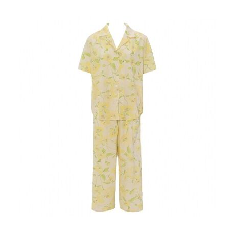 半袖トップ+長ズボンのパジャマセット。さらっとした肌触りのポリエステル素材を使用しています。