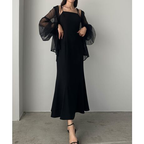 Louere 【薄くて軽いジョーゼット生地】リボンセミマーメイドキャミワンピース