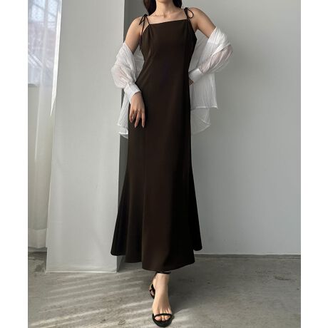 Louere 【薄くて軽いジョーゼット生地】リボンセミマーメイドキャミワンピース