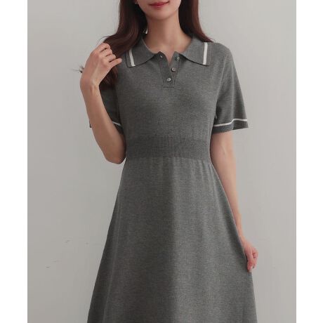 CENEA 薄手配色ラインポロニットワンピース【ペチスカートSET】