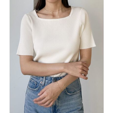 Louere スクエアネック半袖リブニット