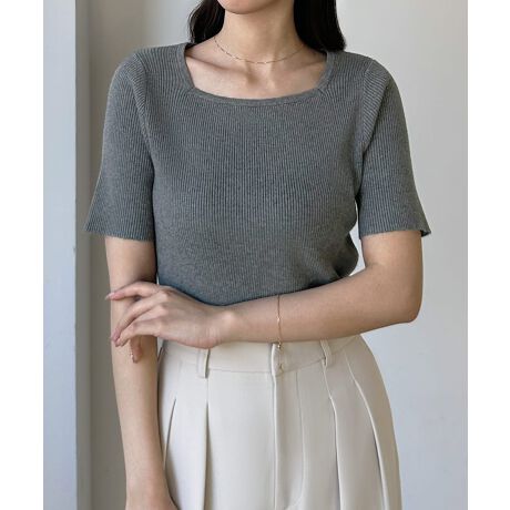 Louere スクエアネック半袖リブニット