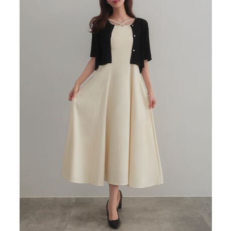 CENEA シアー半袖リブカーディガン+リネンフレアキャミワンピース set【一部ペチSET】