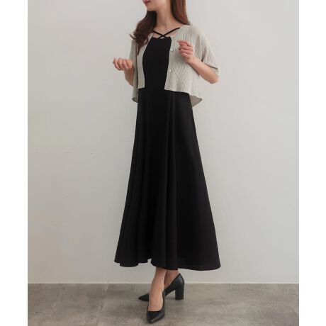 CENEA シアー半袖リブカーディガン+リネンフレアキャミワンピース set【一部ペチSET】