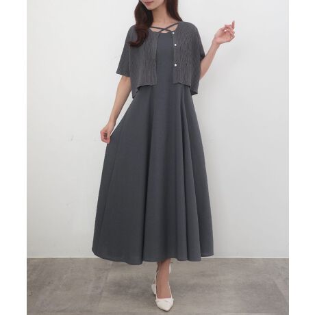 マルイウェブチャネル   /   ワンピースドレス   /   ワンピース   /   CENEA シアー半袖リブカーディガン+リネンフレアキャミワンピース set【一部ペチSET】