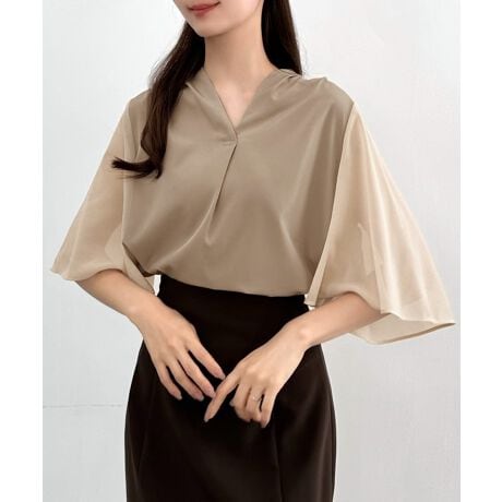 CENEA シアースリーブデザイン襟ブラウス