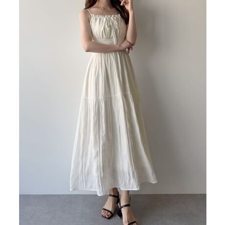 mipiarl ワッシャーシャーリングティアードキャミワンピース