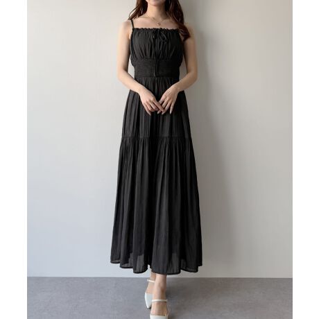 mipiarl ワッシャーシャーリングティアードキャミワンピース