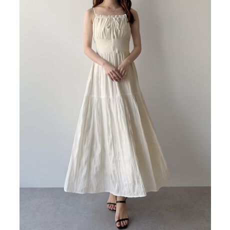 mipiarl ワッシャーシャーリングティアードキャミワンピース