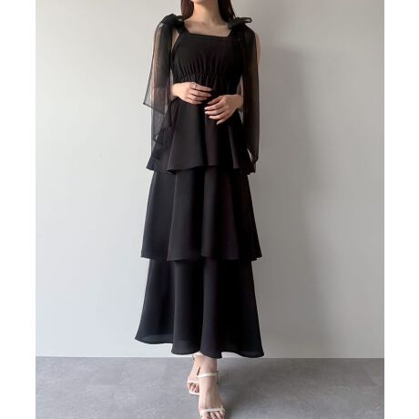 mipiarl チュールリボンティアードキャミワンピース
