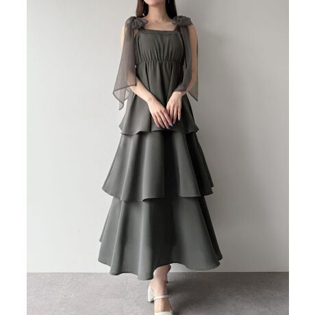 mipiarl チュールリボンティアードキャミワンピース