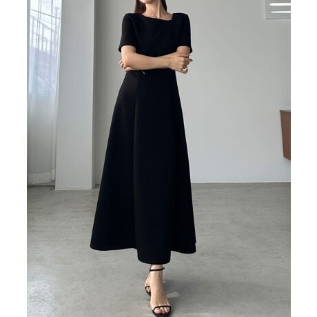 Louere アシメネックカットフレアワンピース【一部ペチスカートSET】