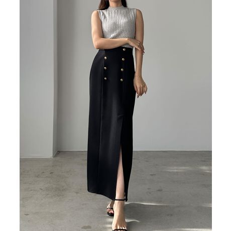 Louere ゴールドボタン前スリットペンシルスカート