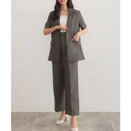 CENEA リネン混半袖ジャケット+ハイウエストパンツset