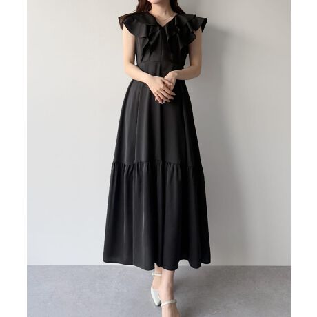 mipiarl フリルスリーブティアードワンピース