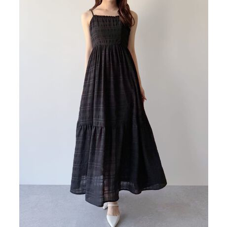 mipiarl シアーチェックセミフレアキャミワンピース