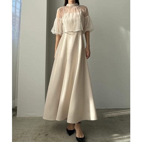 Louere 【オケージョン対応】2WAY半袖シアーボレロ+フレアキャミワンピースSET