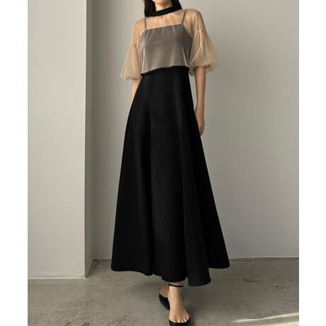 Louere 【オケージョン対応】2WAY半袖シアーボレロ+フレアキャミワンピースSET