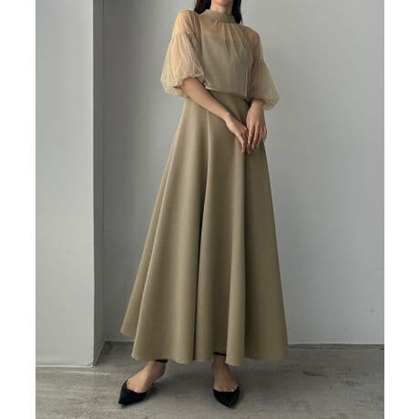 Louere 【オケージョン対応】2WAY半袖シアーボレロ+フレアキャミワンピースSET