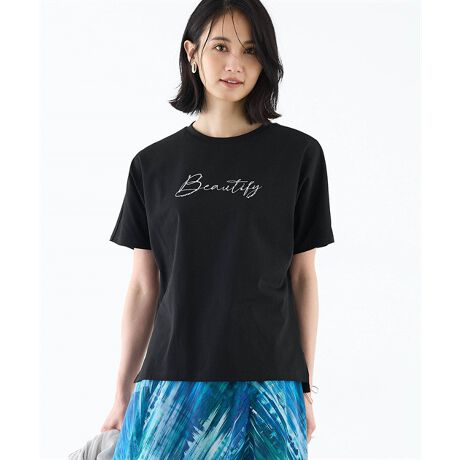 煌びやかな刺しゅうロゴがアクセントになるTシャツ