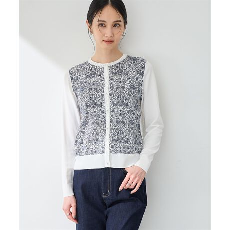 繊細なリバティプリントが施されたカーディガン