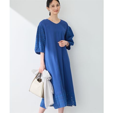 ふんわりとしたパフスリーブがやわらかな風合いを演出するワンピース