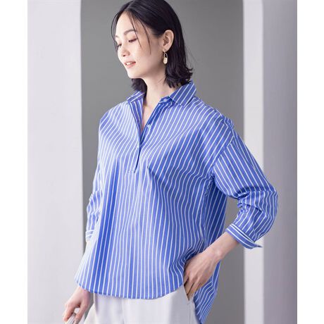 前後差のある裾のデザインが魅力のスキッパーシャツ