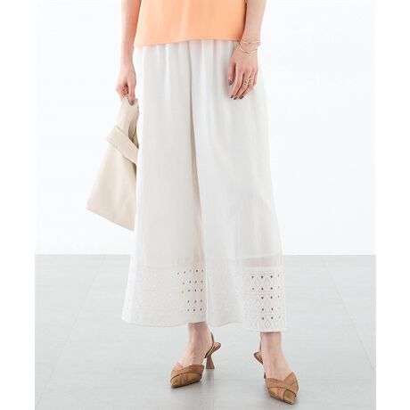 ダイヤ刺しゅうワイドパンツ【ウエストゴム】